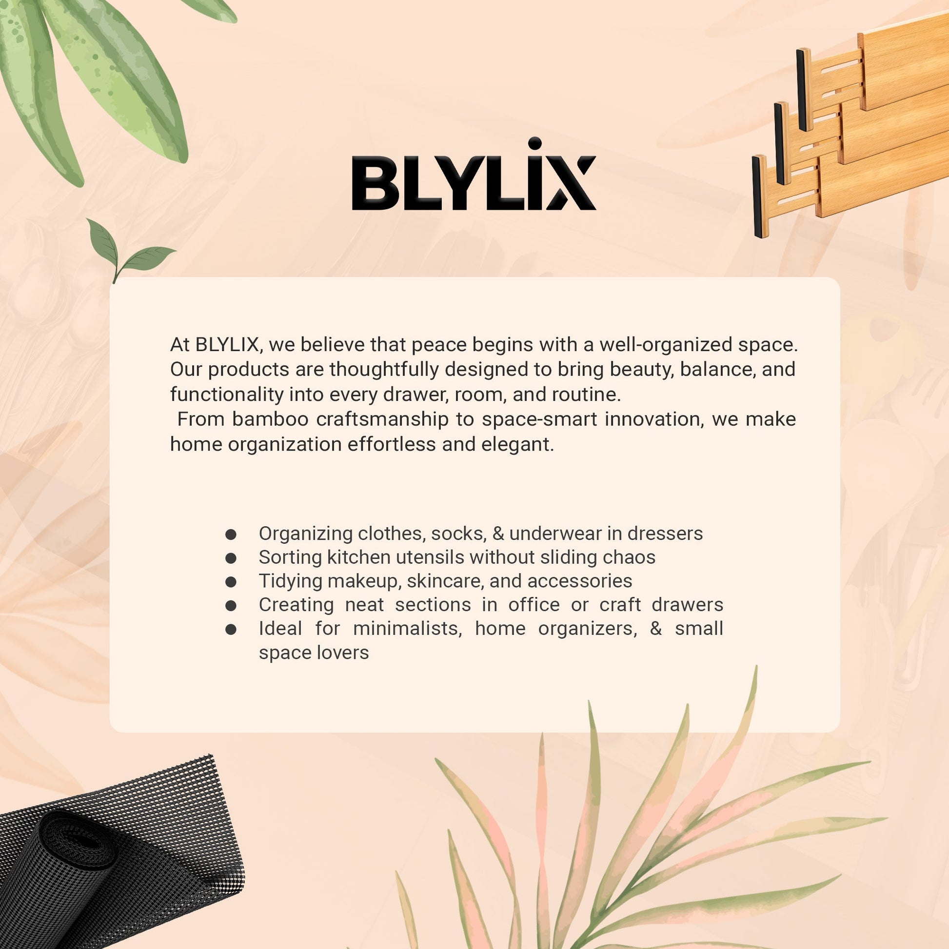 Made of 100% natural bamboo drawer dividers, these are strong, stylish, and eco-friendly. Anti-slip silicone ends ensure the drawer dividers stay firmly in place without damaging your drawers.Multi-Use SpaceAid for Home & Office