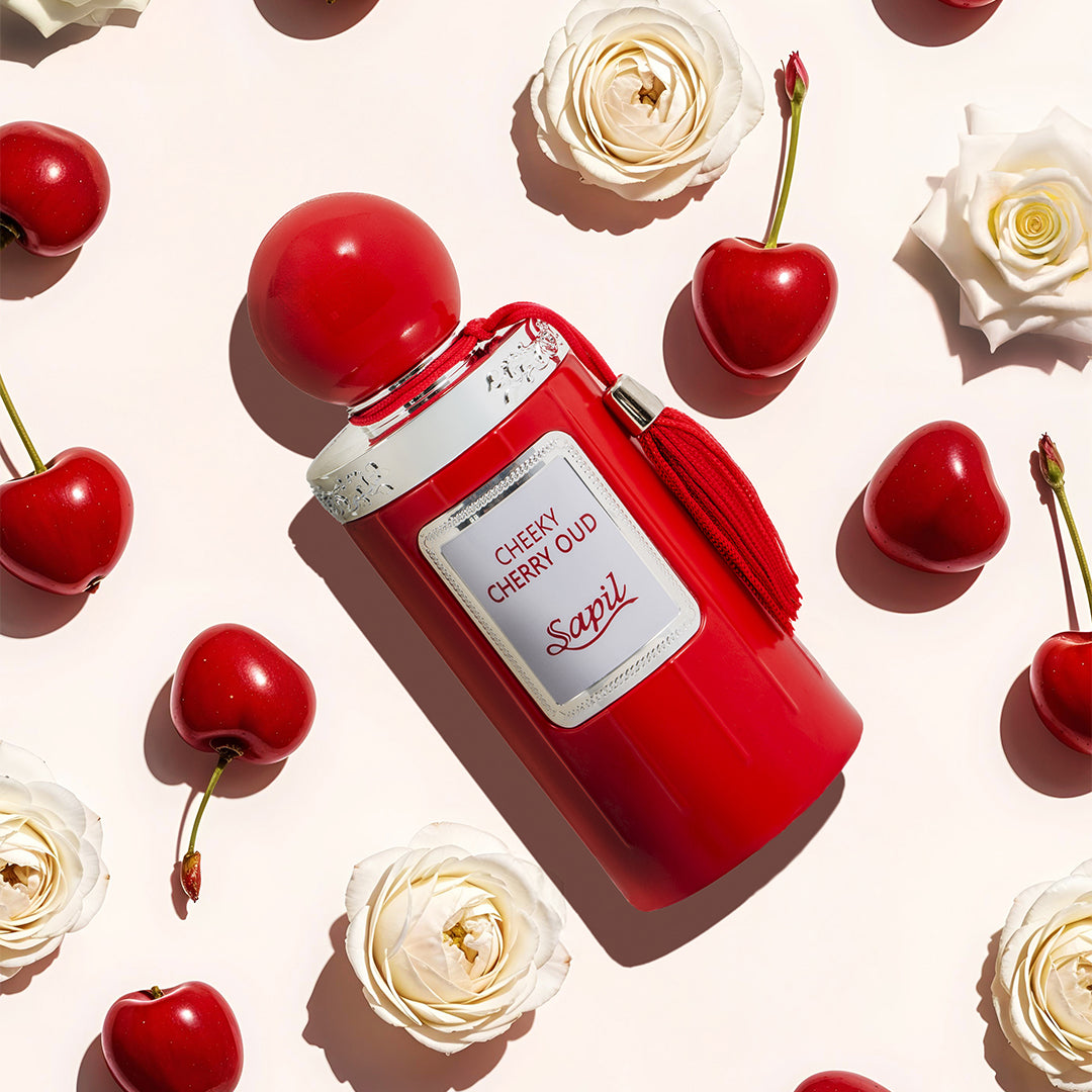Cheeky Cherry Oud is a bold and fruity fragrance that combines the bright sweetness of cherry with the deep, smoky allure of oud. The spicy top notes of cardamom and cinnamon add a daring edge, while the heart of rose and jasmine keeps it elegant. The leathery, oud-infused base gives the fragrance a sultry, lasting finish that is both daring and refined.