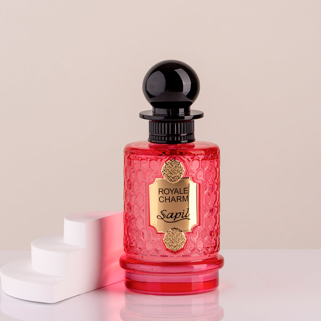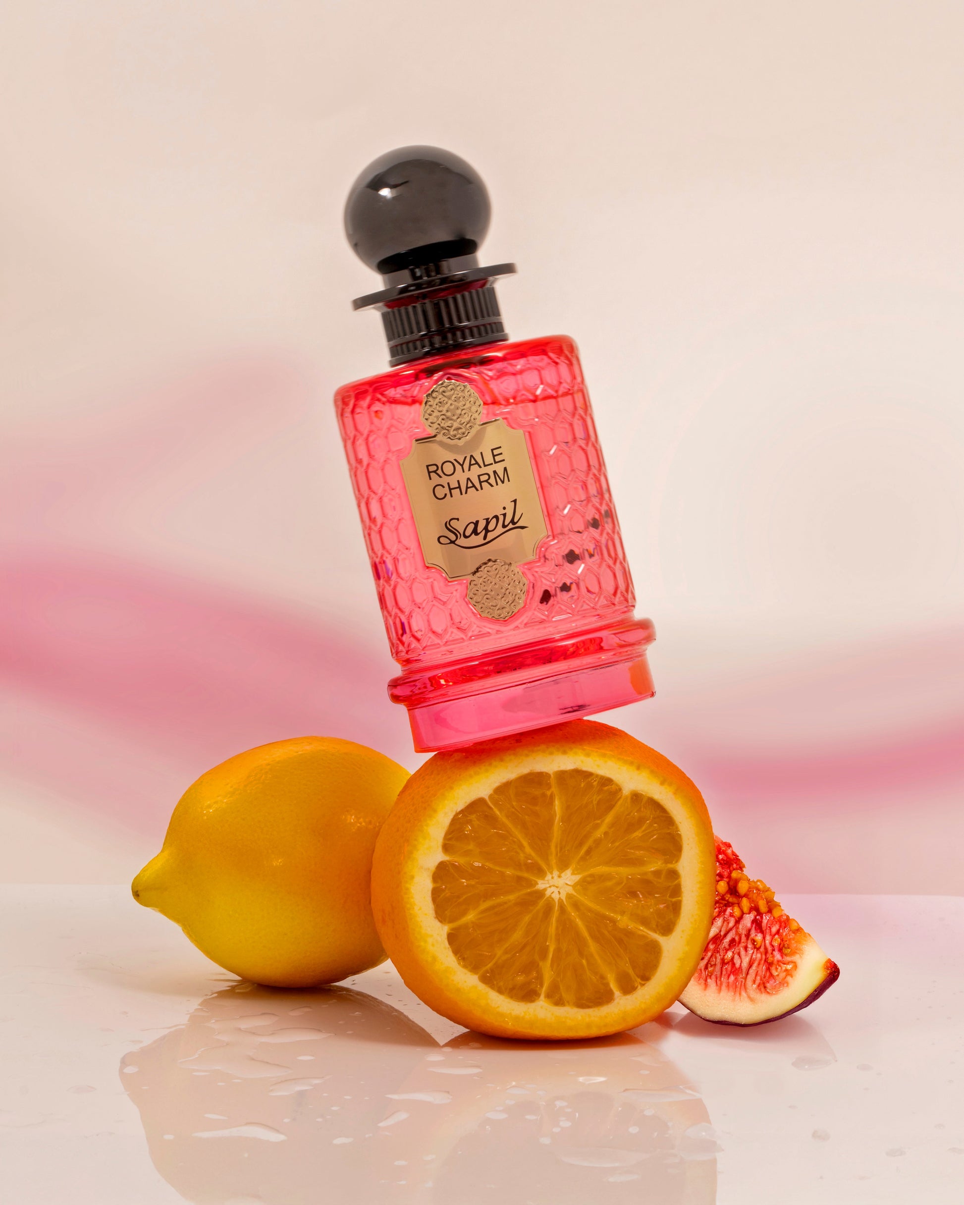 Royale Charm is the fragrance of seduction and charm, crafted for those who enchant effortlessly with their presence. It is inspired by the art of captivating conversation, sparkling laughter, and the ability to make everyone feel at ease. The fruity gourmand notes evoke joy and liveliness, while the deep base notes of amber and vanilla give it a regal touch, making it a scent that commands attention without ever trying too hard.